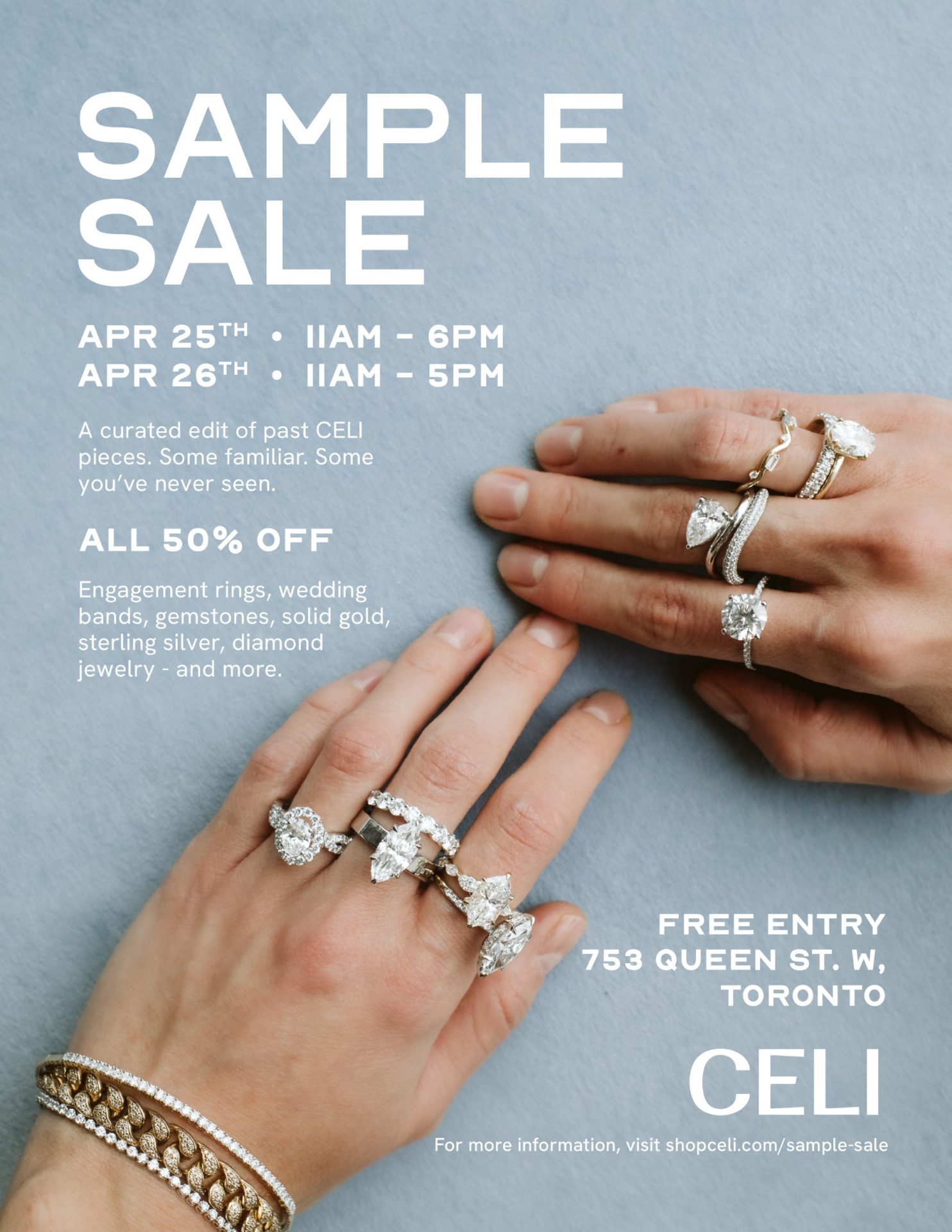 We’re pleased to announce that the CELI Sample Sale is back for Spring! Shop a full brand experience with complimentary coffee, treats, and more for guests – both online and in-store.